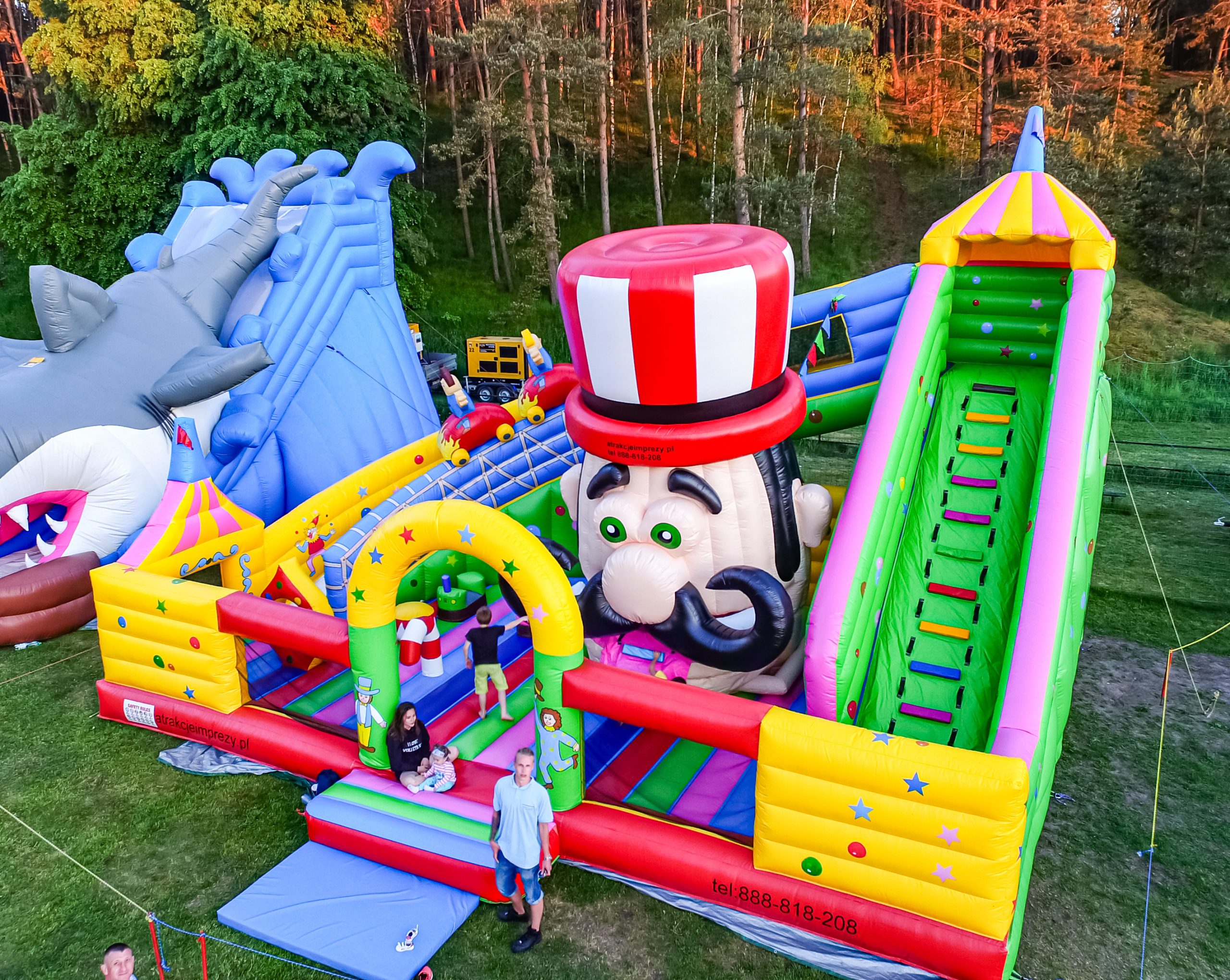 Oferujemy szeroką gamę dmuchańców, profesjonalnych animacji i sprzętu eventowego, dbając o najwyższy standard obsługi i bezpieczeństwa, by każdy event był niezapomniany.